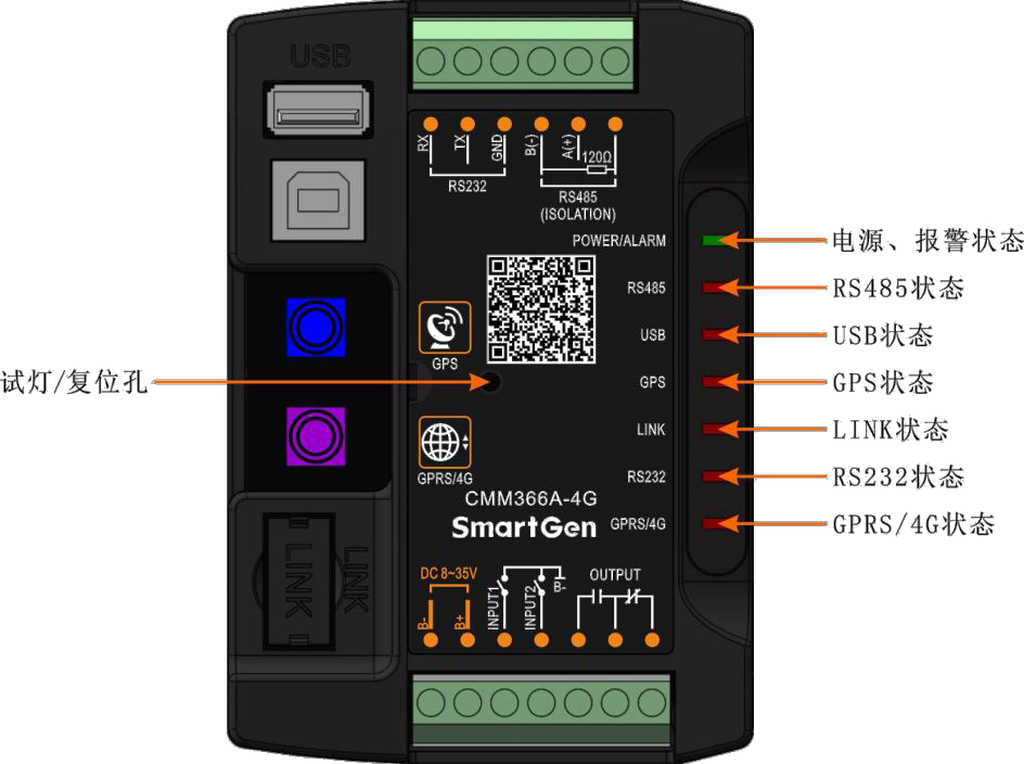 2、具备多种和机组控制模块进行通信的接口:RS485、RS232、LINK、USB(Host);可监控国际一 流品牌的大多数发电机组控制模块;
